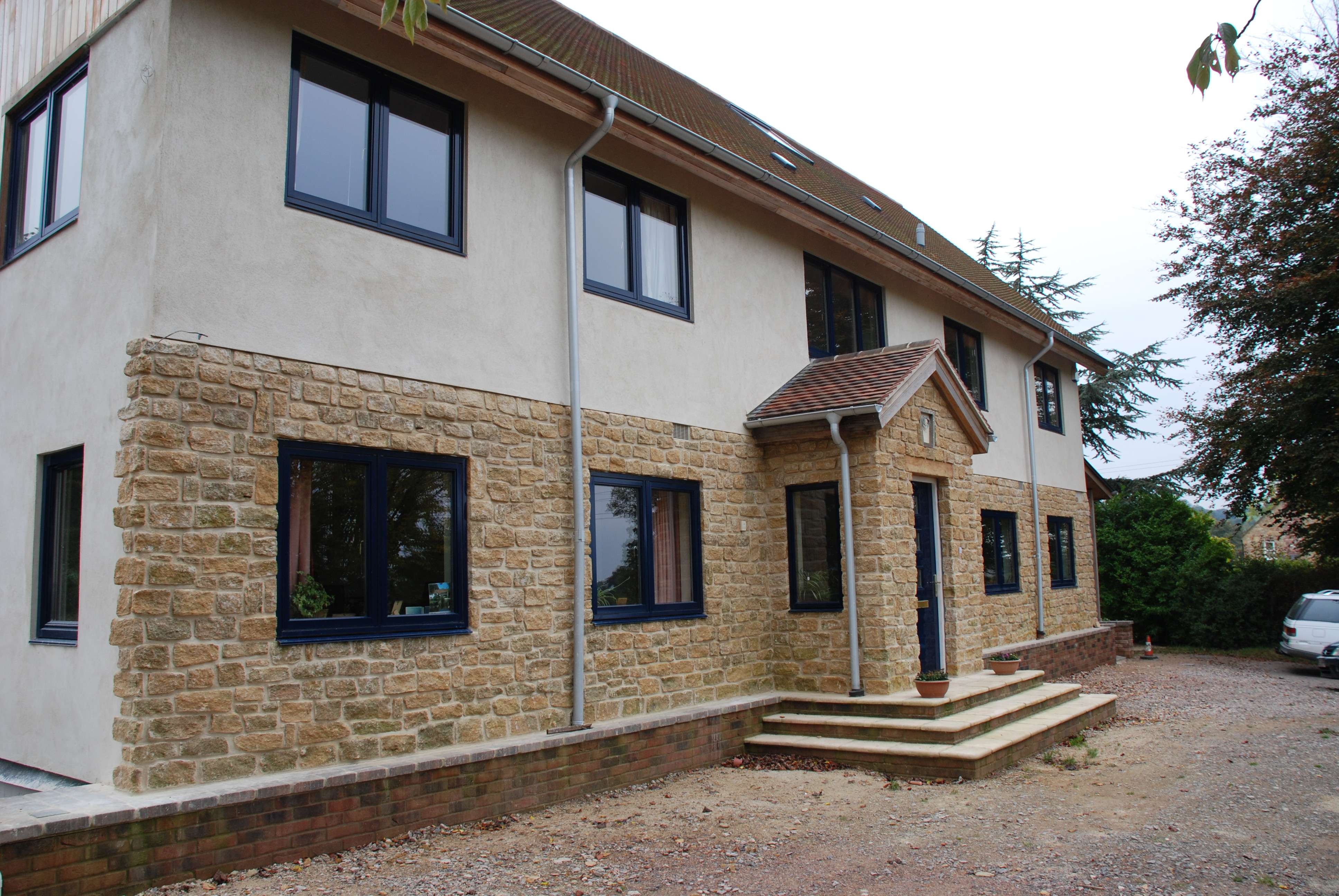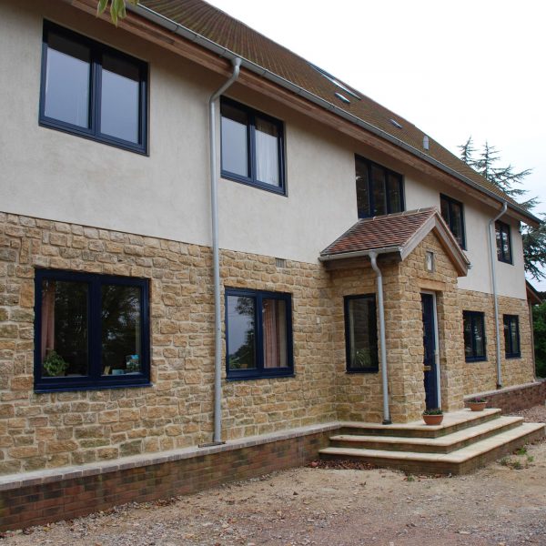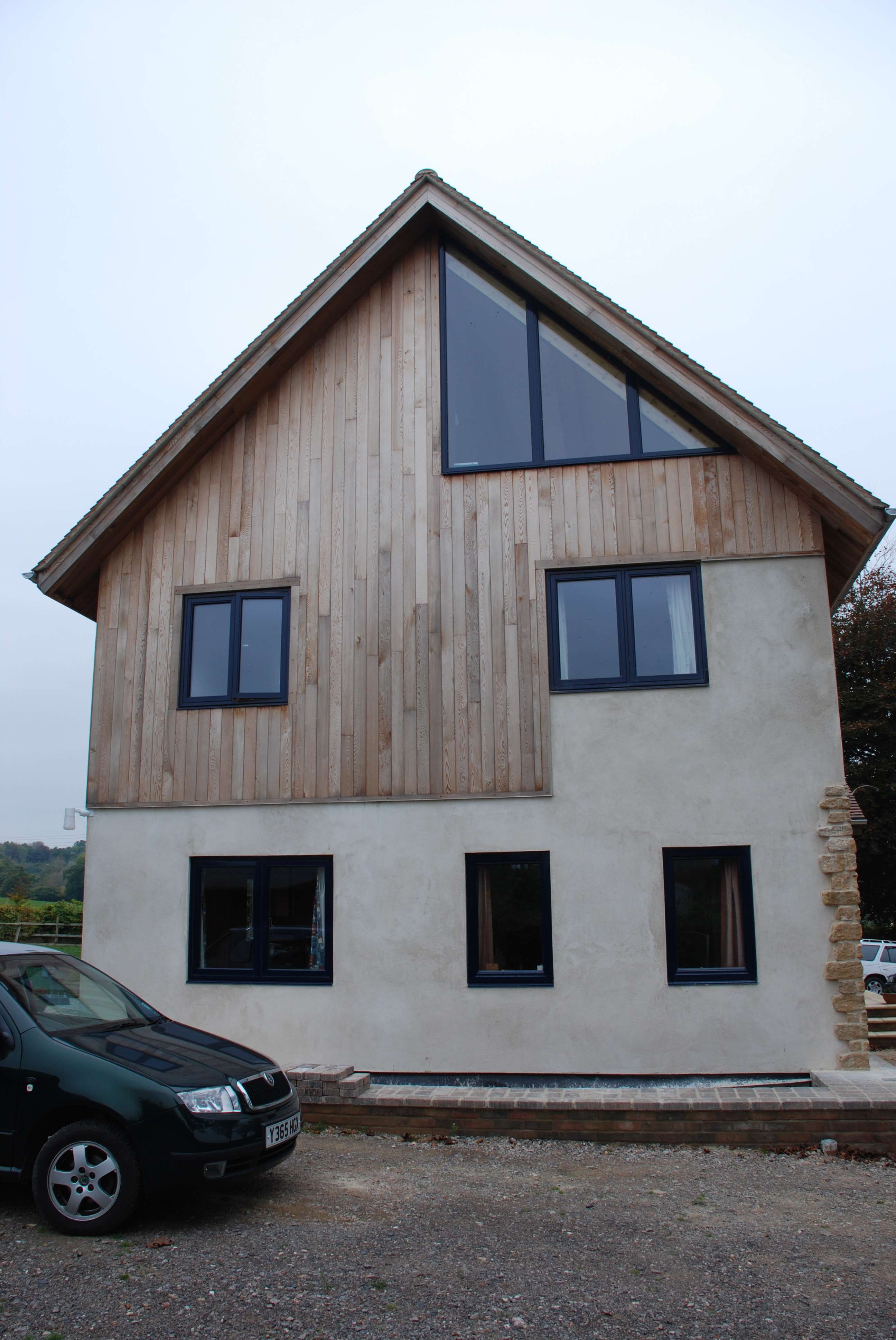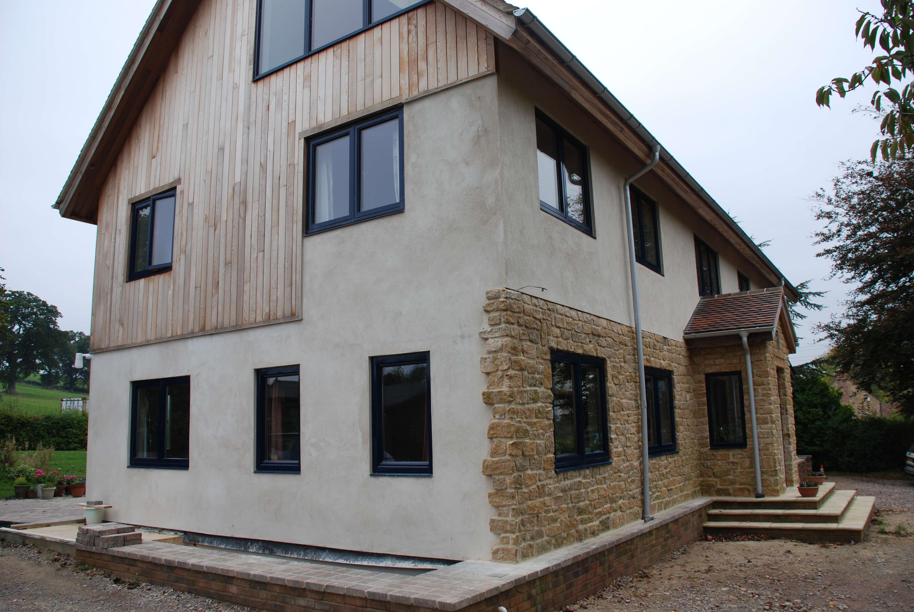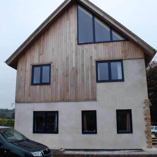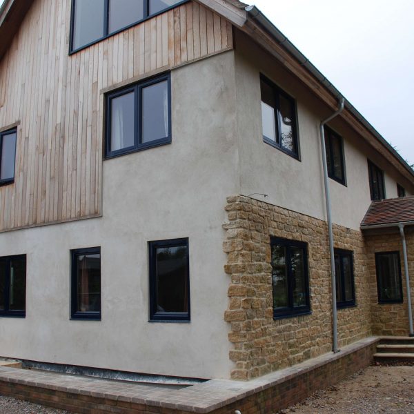 This new build house is constructed of Structurally Insulated Panels (SIPS) on a Steel Frame off a basement that was built in Insulated Concrete Formwork (ICF) and is clad with a combination of Natural Stone, Timber Boarding and Render.