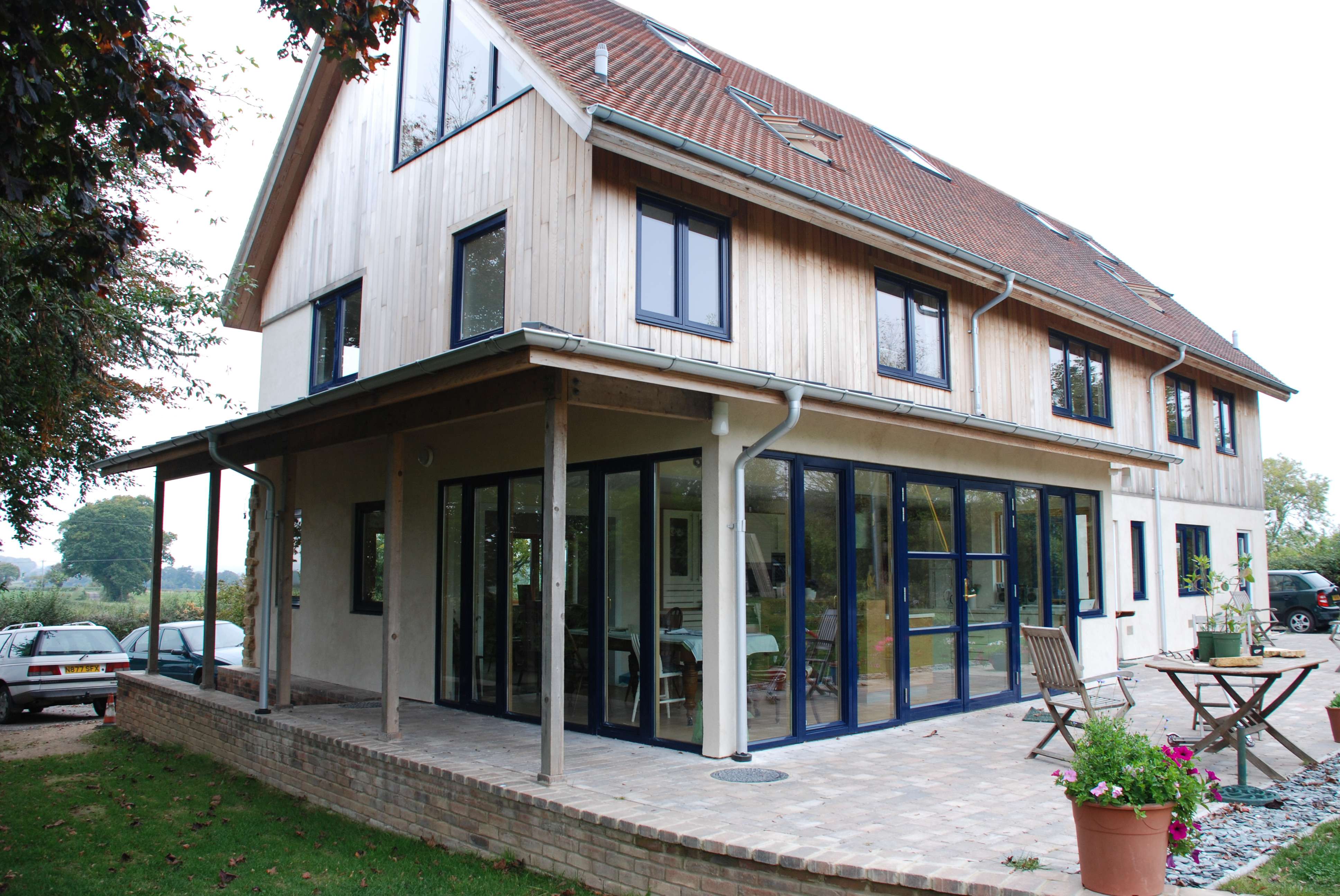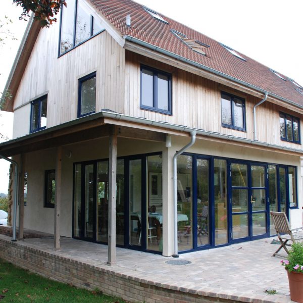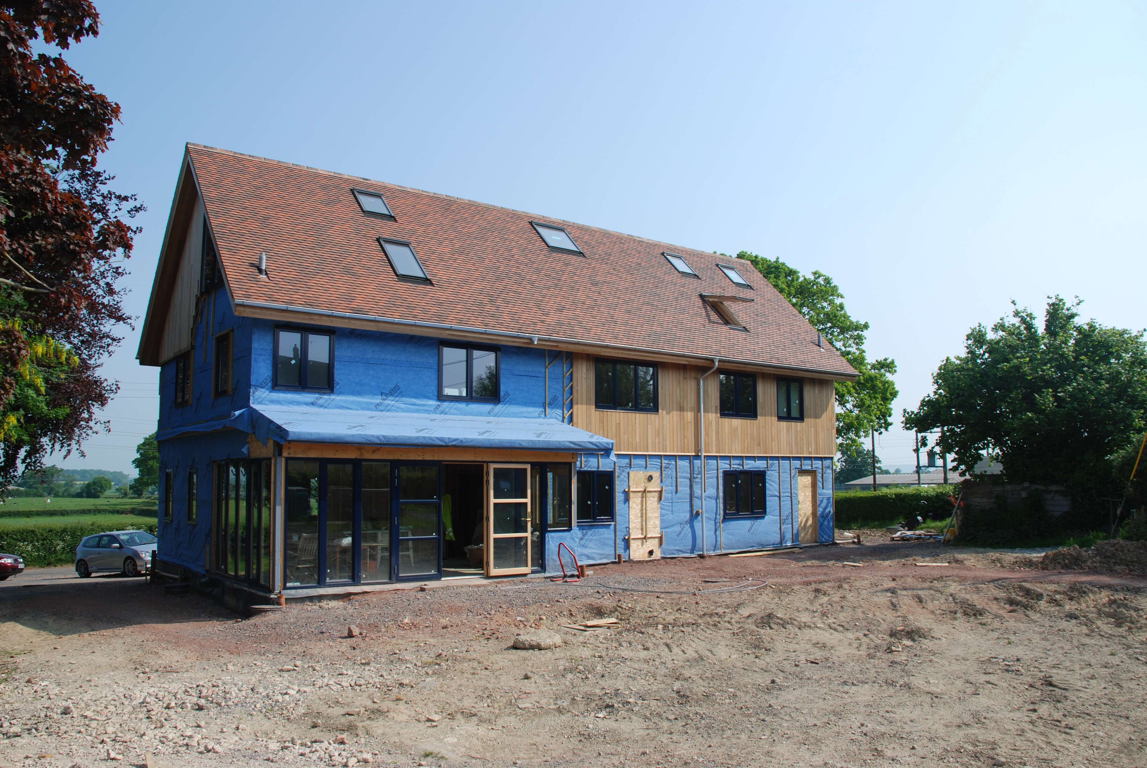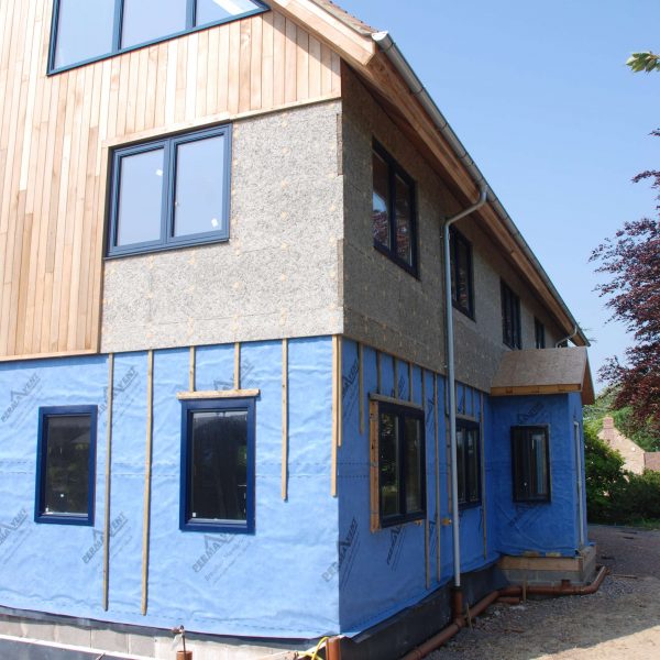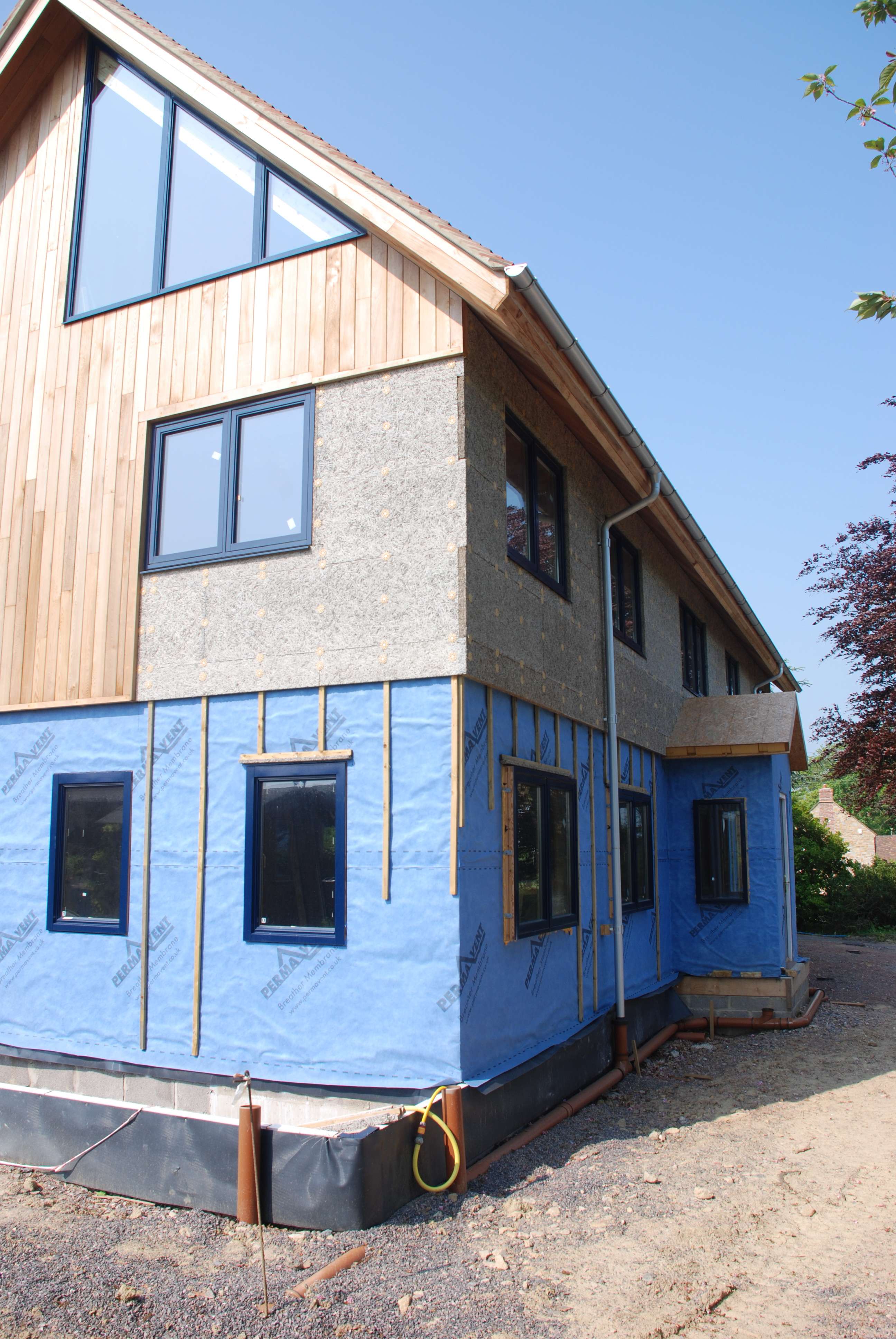 This new build house is constructed of Structurally Insulated Panels (SIPS) on a Steel Frame off a basement that was built in Insulated Concrete Formwork (ICF) and is clad with a combination of Natural Stone, Timber Boarding and Render.